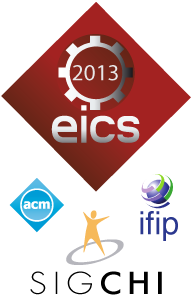 EICS 2013 is the fifth international conference devoted to engineering usable and effective interactive computing systems. Topics of interest include multi-device interactive systems, new and emerging modalities (e.g., gesture), entertaining applications (e.g., mobile and ubiquitous games), safety critical systems (e.g. medical devices), and design and development methods (e.g., extreme programming). Papers should address issues of interest to developers rather than end-users of interactive applications.